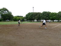 強く投げる、正面で捕る、強く振るなど基本を意識して練習しています。他校との合同練習を積極的にして技術を向上させています。 |