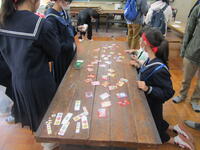 昼休みには、1年生、2年生による催し物が開催されました。1年生は、日本の伝統的な遊びをテーマにしたコーナーを開催しました。わなげ:的に向かって輪を投げるシンプルな遊びは、誰もが夢中になる盛り上がりを見せました。