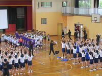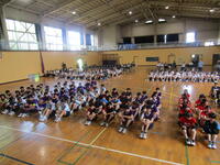 まもなく総合体育大会が開催されます。三年生にとっては、中学校生活最後の部活動大会となります。本日は、エールを送るために川間中学校壮行会を行いました。