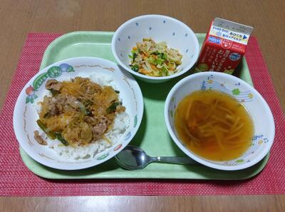 豚丼 牛乳 アーモンド和え 沢煮椀