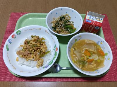 ツナそぼろ丼 牛乳 小松菜のおひたし