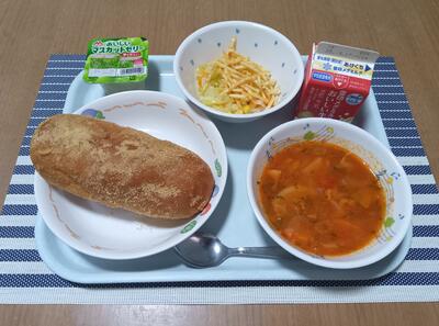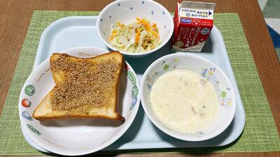 クリームライスにはホタテが入っていて、旨味たっぷり!いつもとはひと味違う給食を楽しみました♪