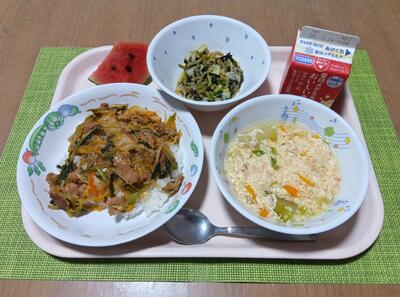 プルコギ丼 牛乳 春雨サラダ 卵わかめスープ