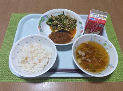 今日は野田市でとれた発芽玄米と枝豆、また、千葉県でとれたなすを使った献立でした!