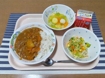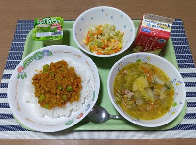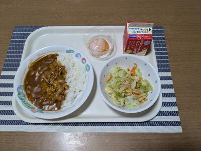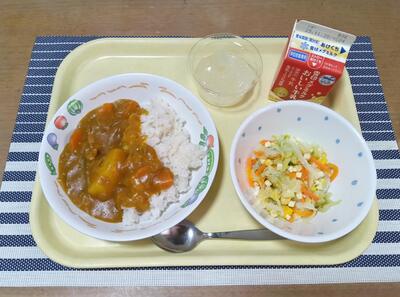 ドライカレー 牛乳 キャベツとチーズのサラダ