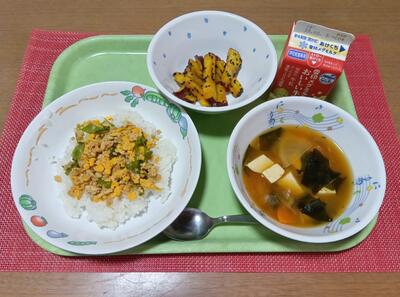 鶏そぼろ丼 牛乳