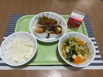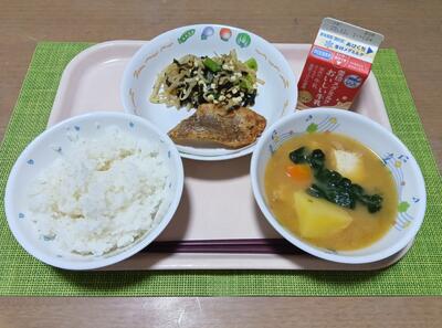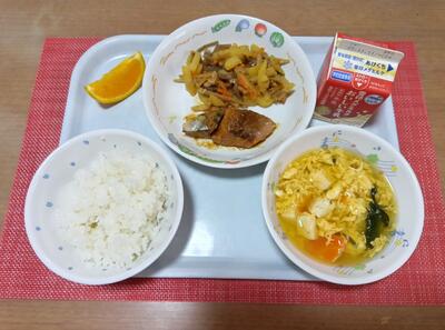 ご飯 牛乳 鯖の味噌煮 じゃが芋の金平