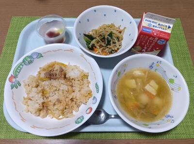 こぎつねご飯 牛乳 白菜とひじきの和え物