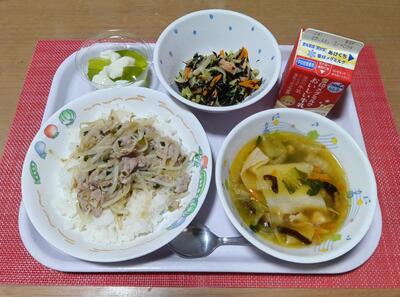 豚キムチ丼 牛乳 ごまだれサラダ