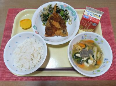 発芽玄米ご飯 牛乳 アジフライ 磯香和え