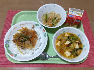 ご飯 牛乳 四川豆腐 揚げギョーザ