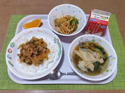プルコギ丼 牛乳 春雨サラダ キムチチゲ
