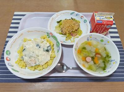 クリームライスにはホタテが入っていて、旨味たっぷり!いつもとはひと味違う給食を楽しみました♪