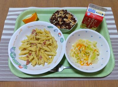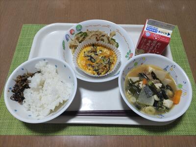 ご飯、牛乳、いわしの蒲焼、磯香和え、