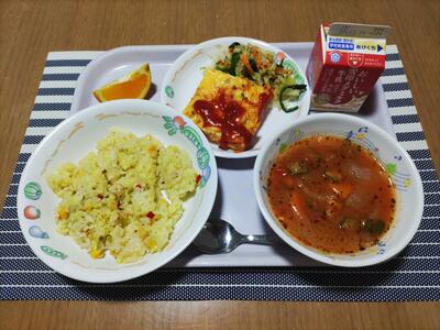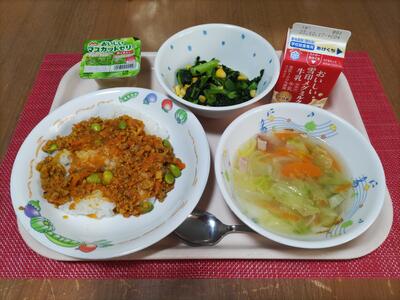 今日のメニューは、家庭科の授業の一環で2年1組生活班が考案しました!