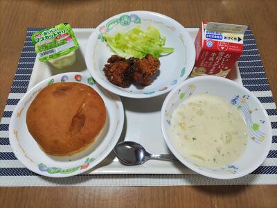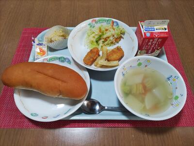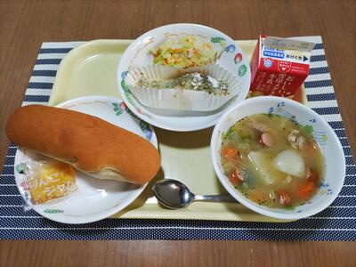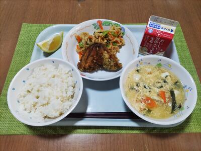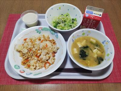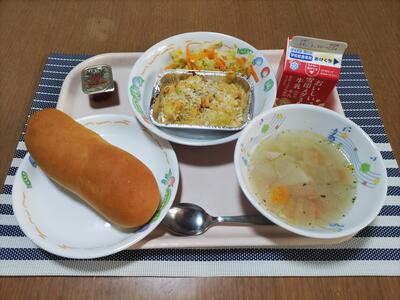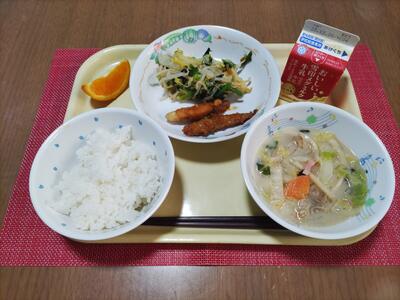 ※調理室内のオーブンが故障したため、予定していた「鮭の西京焼」を「鮭フライ」に変更しました。