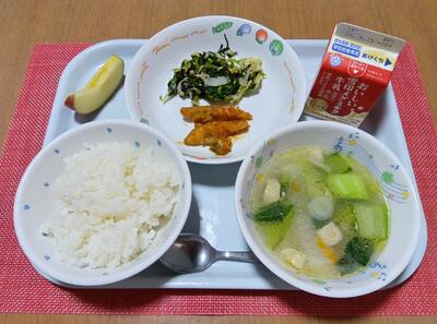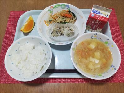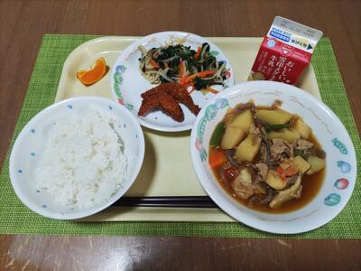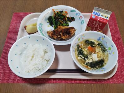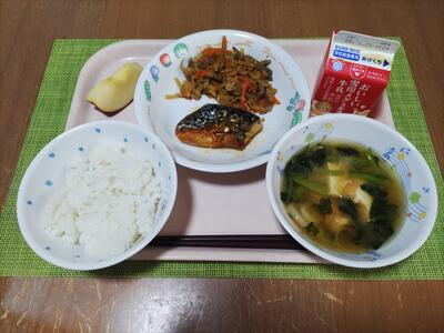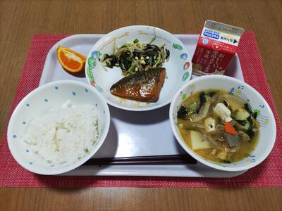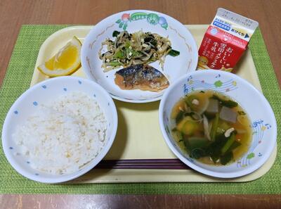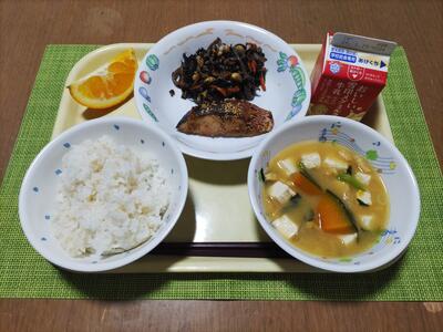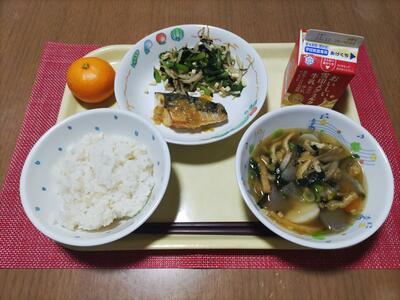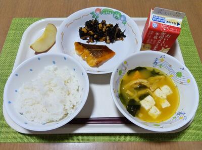 ご飯、牛乳、いなだの照焼、磯香和え、