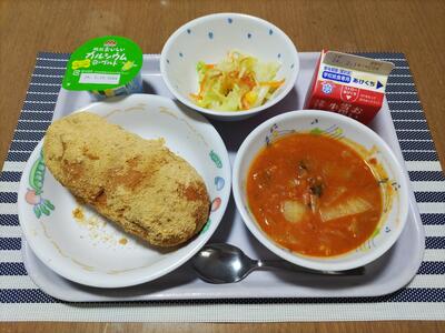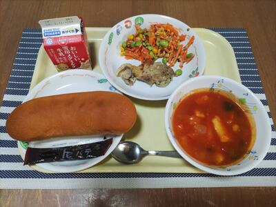 今日は野田市出身、走り高跳びの戸邉直人選手に関する給食です。走り高跳びの発祥地は「イギリス」ということで、イギリス料理をお届けしました。