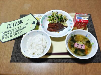 今日は「江川米」という江川地区でコウノトリが生育できる自然環境を整えながら作る米を使いました。