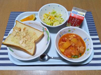 ココア揚げパン、牛乳、パリパリ海草サラダ、