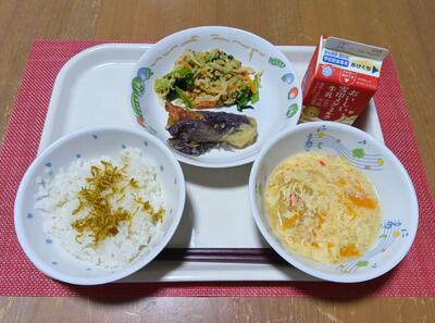 ご飯、牛乳、赤魚の香味焼、大豆の磯煮、