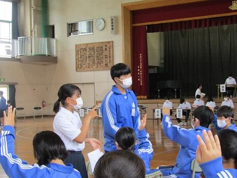 本日、5校時、体育館で役員任命式が行われました。