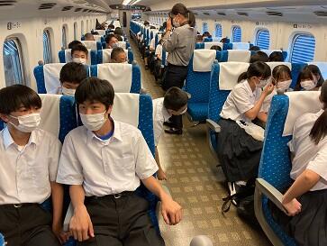 新幹線内ではみんな楽しく過ごしています。