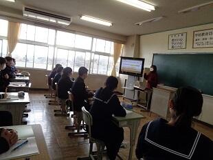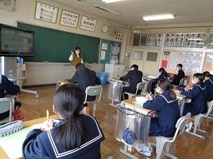 2月25日(金) 3年生の千葉県・埼玉県の公立高校入試が24日・25日と行われる中、2年生は昨日、職業講話を実施しました。本来なら職業体験を行う予定でしたがコロナの影響で中止となり、1年生の時にできなかった職業講話を今回実施することとなりました。本当はもっと多くの方に来ていただき、多種多様なお話を聞ければ良かったのですが、このような状況なので3人の方にリモートで話を聞きました。シェフの濱田さん、保育士の沖山さん、歯科衛生士の西野さん貴重な時間をありがとうございました。それぞれの職業について丁寧に熱意をもって話して下さいました。「出会い」外に出て会いに行く。本や映画をいっぱい読んで、いっぱい観て、興味の幅を広げさせてほしいと話していました。また、どんな仕事についても「仕事って楽しいよ」と思って欲しいと話していました。ありがとうございました。