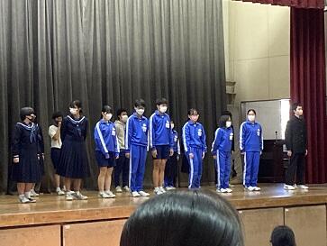 12月21日(火)冬休みまで後3日となりました。昨日、2年生が歌声発表会を開催しました。1月にはスキー林間を控えた2年生ですが、体も大きくなり声も落ち着いてきた感じがします。2年生もついこの間までコロナの影響で歌声活動ができませんでした。しかし、最近は練習の時から「いい声」が聞こえてきていました。1年生同様、なかなか合わせる練習ができませんでしたが、この発表会を機に歌声活動を盛んにしてほしいと願います。ちなみに、今回は賞の受賞はありませんでしたが、次回(年度内)はコンクール形式で実施することを学年主任の石田先生が発表しました。