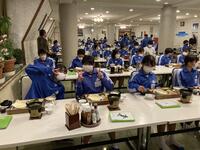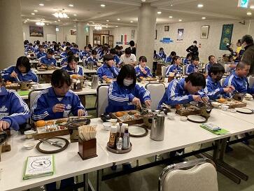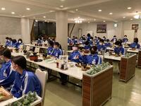 川間中2年生は午後の講習を終え、夕飯を食べ、現在、お風呂とお土産、学級反省会に分かれて活動しています。今日の夕飯はすき焼きでした。スキーのほうも、全班リフトに乗り斜面を滑り降りていました。その上達の早さに驚いています。健康状態も良好で最終日の明日も元気に講習に参加できると思います。