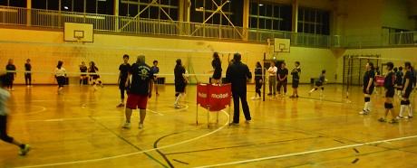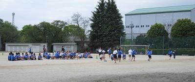 川間中の体育館で男子バレーボール部が試合です。校庭では、サッカー部が