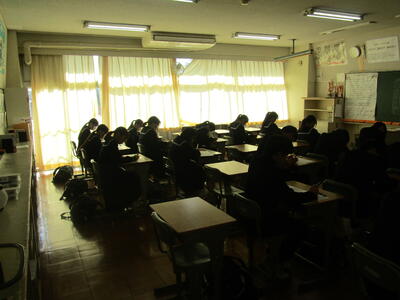 本日、明日と定期テストを行っています。子どもたちは、真剣な様子で試験を受けています。明日は、「理科」、「数学」になります。最後まで、諦めずに頑張りましょう!!