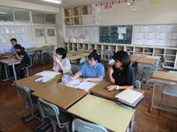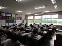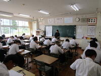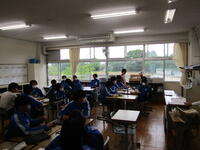 5月11日(土)の土曜授業では、1年生は校外学習について、2年生は授業、3年生は上級学校説明会、進路保護者会を行いました。上級学校説明会では高校の先生を講師に招き、入試の傾向と対策などのお話をいただきました。