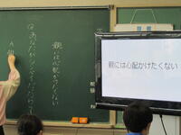 1年生を対象に、外部の講師を招いて「いじめ」に関する授業が行われました。内容としては、SNSのグループチャットに特定の個人に対する誹謗中傷が書き込まれたとき、あなたはどうしますか?というものです。止めるよう書き込む。何もしない。それぞれの考えが出されていました。SNSによるトラブルは近年、急増しています。学校としては、相談件数も多く、校内対応にとどまらないこともあり、対応には非常に苦慮します。SNSの使い方について、各家庭でも話題に挙げていただければと思います。