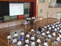 全校集会が行われ、生徒会、各委員会からの発表が行われました。生徒会からは、あいさつについての話があり、川間中で自主的に挨拶できている人は、3割程度という点に危機感を持っているという内容でした。元気な挨拶が飛び交い、活き活きと活動している学校作りを生徒と共に進めていきます。