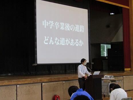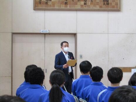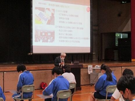 1校時に上級学校説明会を行い、西武台千葉高校の逆井芳男先生にご講演をしていただきました。