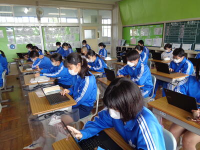 11月2日の総合学習では、高校訪問に向けて各班で訪問先の高校についての調べ学習を行いました。