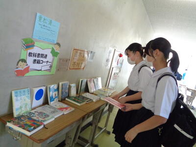 2年生の廊下に書籍コーナーが設置されました。直木賞や芥川賞を受賞した作品を中心に様々な本が置かれています。
