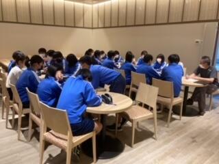 今日は京都市内の班別行動です。朝食をモリモリ食べて、元気に出発しました。