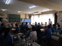 東京理科大学と連携した、わくわく理科授業が2時間目から行われています。大学の教授、大学院生が教えながら、授業を進めています。内容としては、麻酔をかけて魚の解剖を行っています。大騒ぎになることも予想していましたが、真剣に黙々と手を進めている生徒達には、すごい!と驚かされてしまいました。
