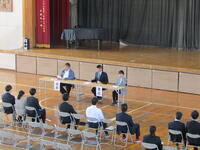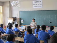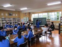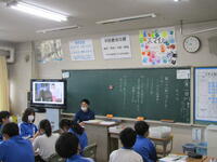 5月11日(土)の土曜授業では、1年生は校外学習について、2年生は授業、3年生は上級学校説明会、進路保護者会を行いました。上級学校説明会では高校の先生を講師に招き、入試の傾向と対策などのお話をいただきました。