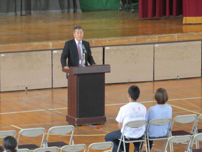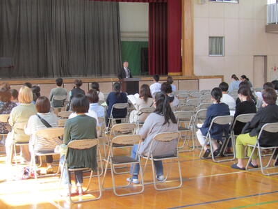 体育館にて、PTA総会が行われました。令和5年度の報告、令和6年度の計画が役員より示され、承認されました。総会後には役員の退任式が行われ、4名の方が退任されました。PTAへのご協力感謝申し上げます。