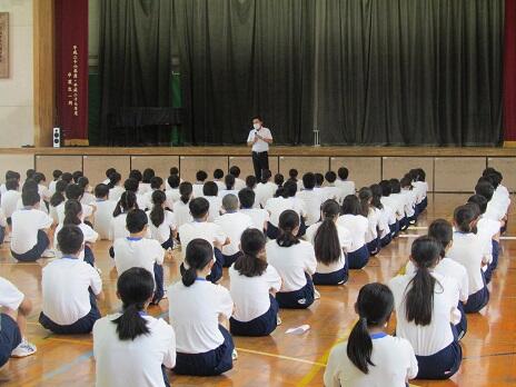また、全校集会後、避難訓練を実施しました。雨のため、急遽会場が変更になるなどいつもと動きが異なりましたが、全員しっかりと行動することができました。