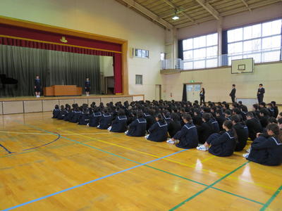 本日,平成31年度川間中学校の着任式・始業式が行われました。今年度は新たに9名の職員が着任し,新体制としてスタートを切りました。始業式では,各学年の代表生徒が新年度の決意や抱負を話しました。始業式後には,新学年職員や新学級が発表されました。