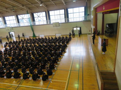 本日前期の修了式が行われました。表彰と修了式の2本立てで行われ,学級の時間には通知表が渡されました。前期の成績を見て,喜ぶ生徒もいれば悔しがる生徒もいました。後期は,前期にできなかったことを生かし,自分を高められるように努力していきましょう。
