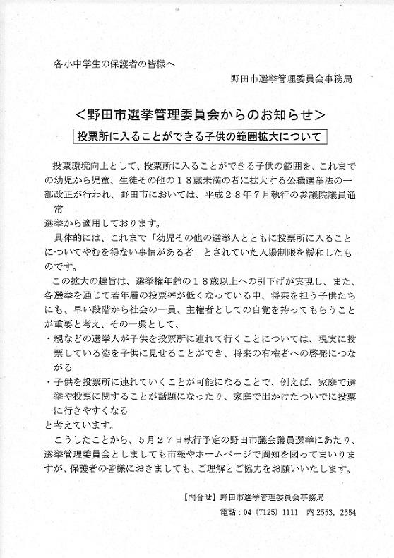 度より、公選挙法が改正されたことで、投票所に入ることができるのは「児童、