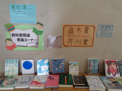 2年生の廊下に書籍コーナーが設置されました。直木賞や芥川賞を受賞した作品を中心に様々な本が置かれています。