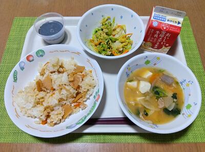 たけのこご飯 牛乳 アーモンド和え 豚汁
