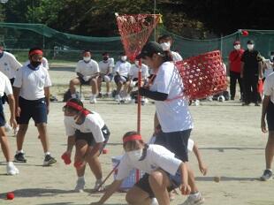 10月4日(月)台風の影響で延期となりましたが、晴天に恵まれ、令和3年度の体育祭を開催することができました。「気炎万丈~つなぐ歴史のバトン~」のスローガンのもと、生徒たちは、今まで充電したパワーを思う存分発揮し、体育祭を楽しんでいました。結果は青組の優勝です。