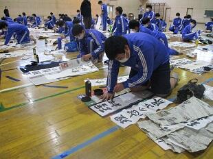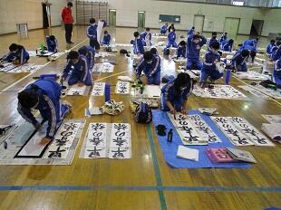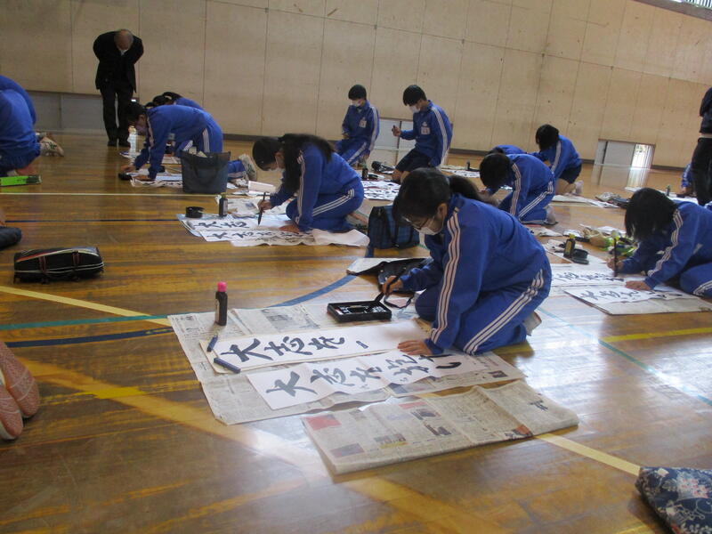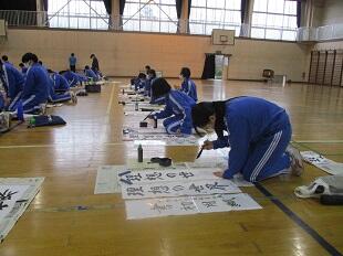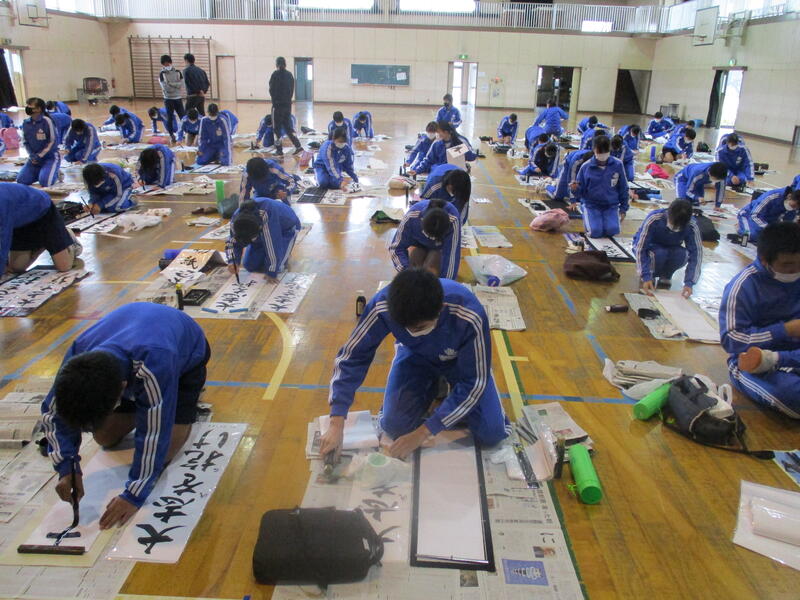 1月12日(水)連休明けの昨日、席書大会が開かれました。新年にふさわしいこの行事。1年生は「早春の旅」 2年生は「大志を抱け」 3年生は「理想の世界」という題を書きました。どの学年も集中力が素晴らしく、正座をして心を落ち着けて筆をとる姿がとても印象的でした。